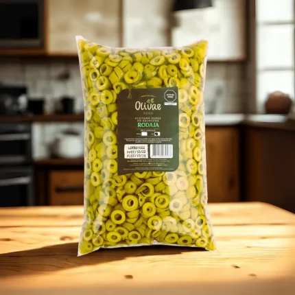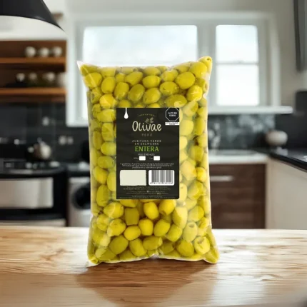 Aceituna verde sin hueso, fácil de disfrutar y lista para cocinar o servir.