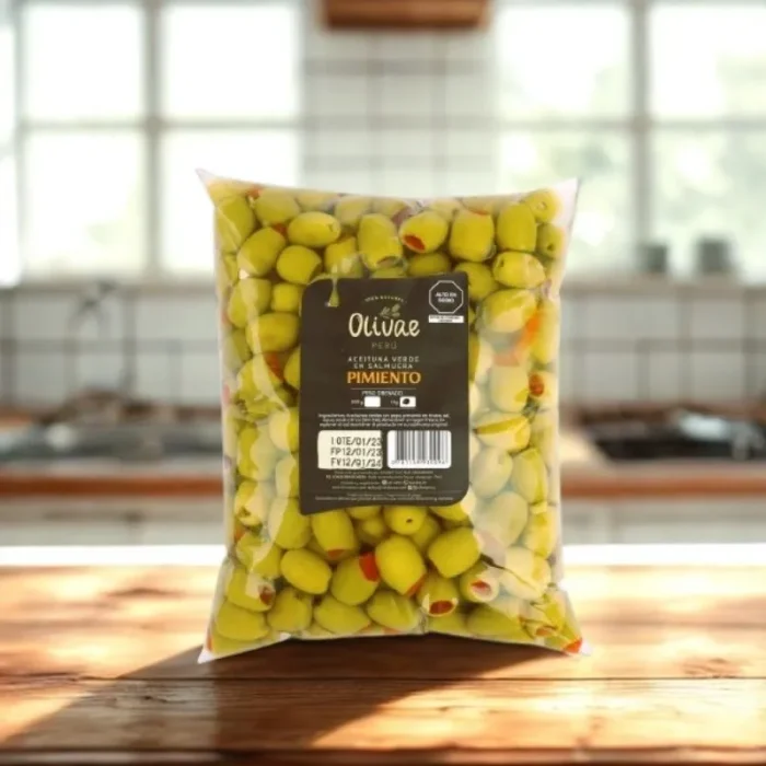 Clásicas aceitunas rellenas de pimiento rojo, ideales para tablas o snacks.